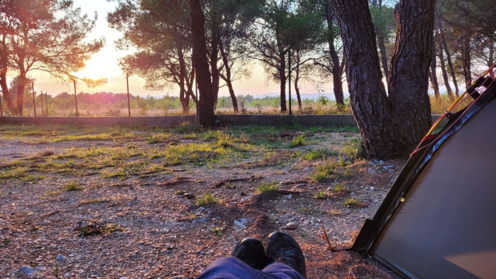 Dort parkte ich erst mal in etwas Abstand zur… genau nächsten Straßensperrung. An der Rezeption wunderte man sich, wo mein Auto ist. Ich wußte ja nicht, daß i h noch auf den Platz fahren kann. Nagut, Check In war schnell erledigt und ich hatte glückicherweise noch ausreichend Bargeld dabei. Dann zeigte mir die nette Dame, wo alles ist. Während wir über den Platz liefen, nahm ich den Geruch der Pinien war. Und die Ruhe… noch… aber dazu komme ich gleich.